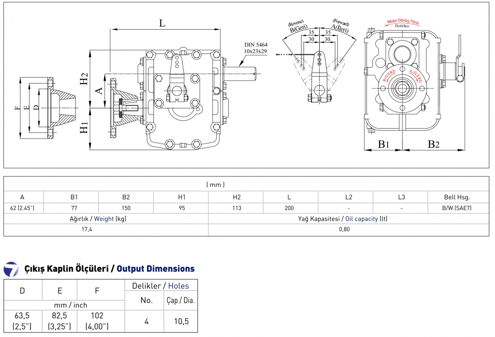 In gear lever position (A),(Ref.dimensions) engine shaft and the propeller rotate in opposite directions,in position (B) in the same directions.